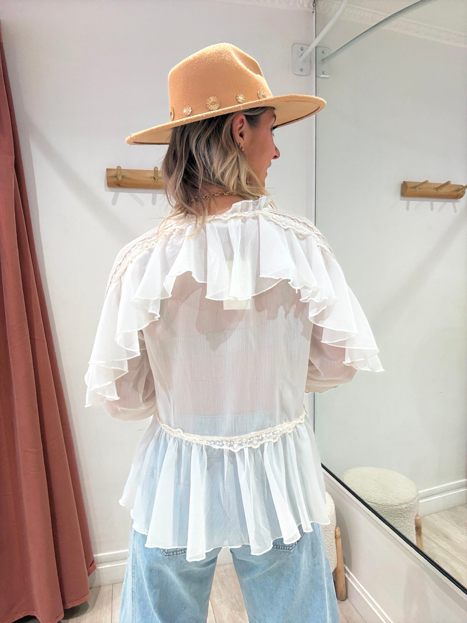 Blouse écru à volants