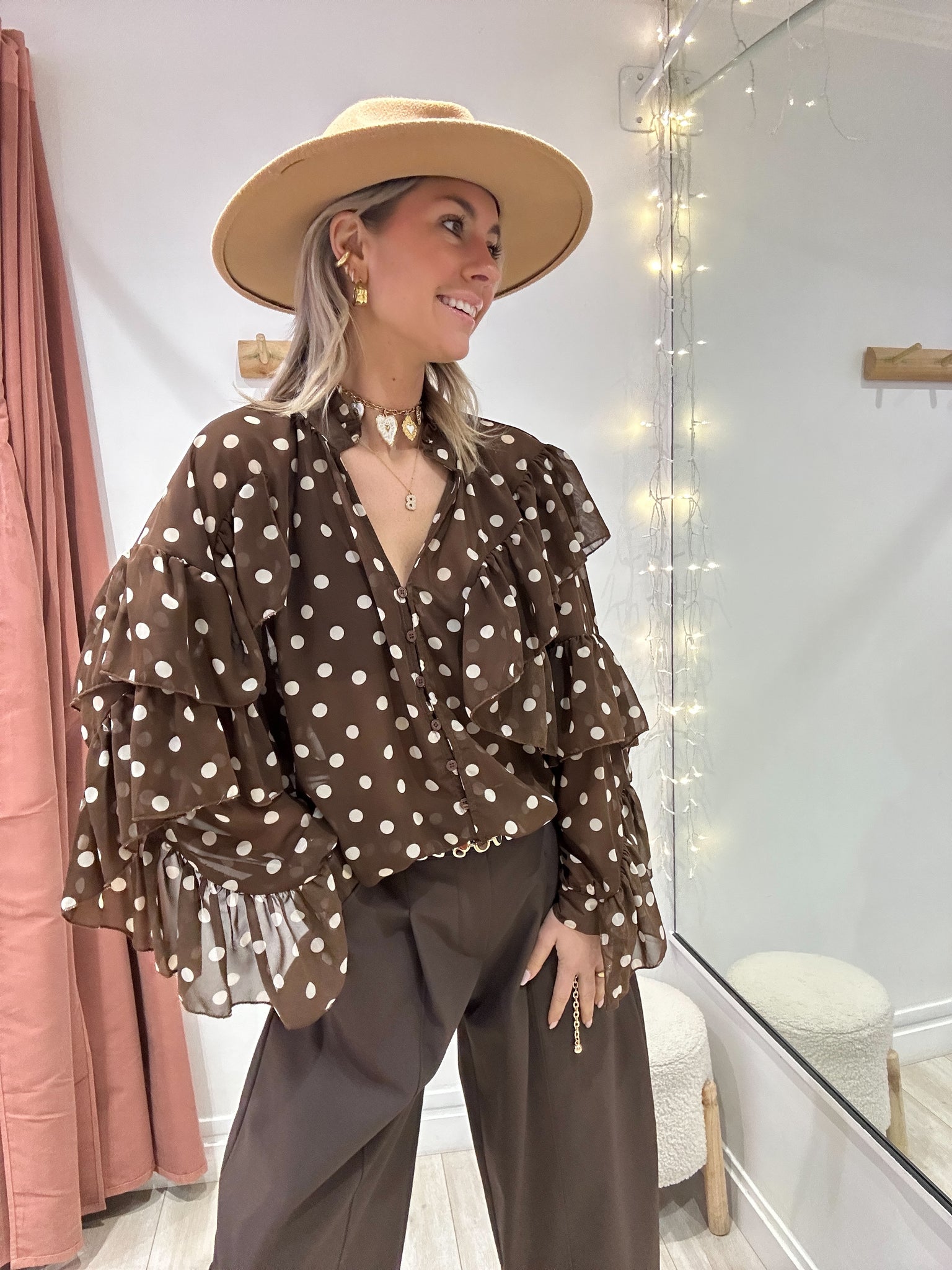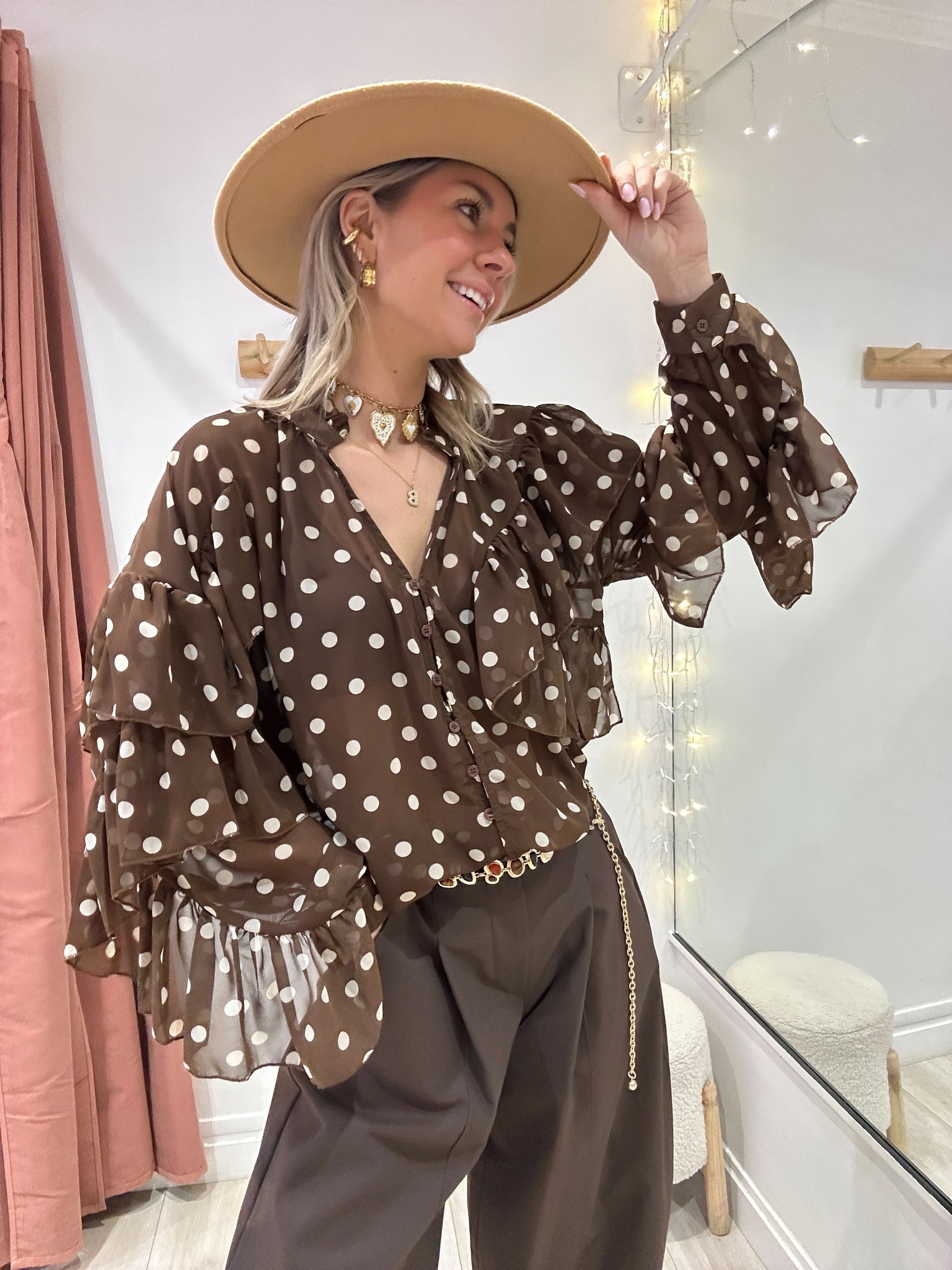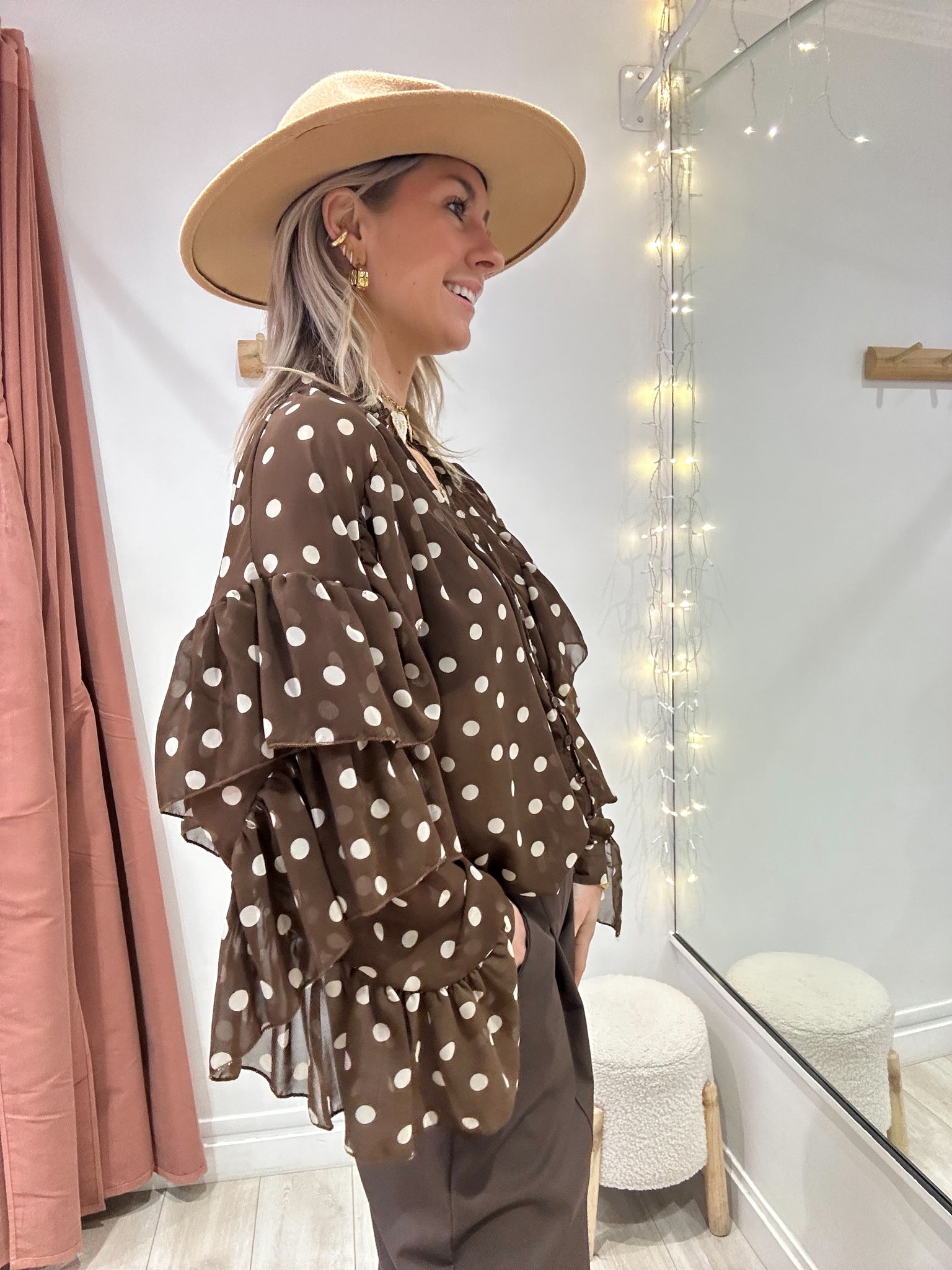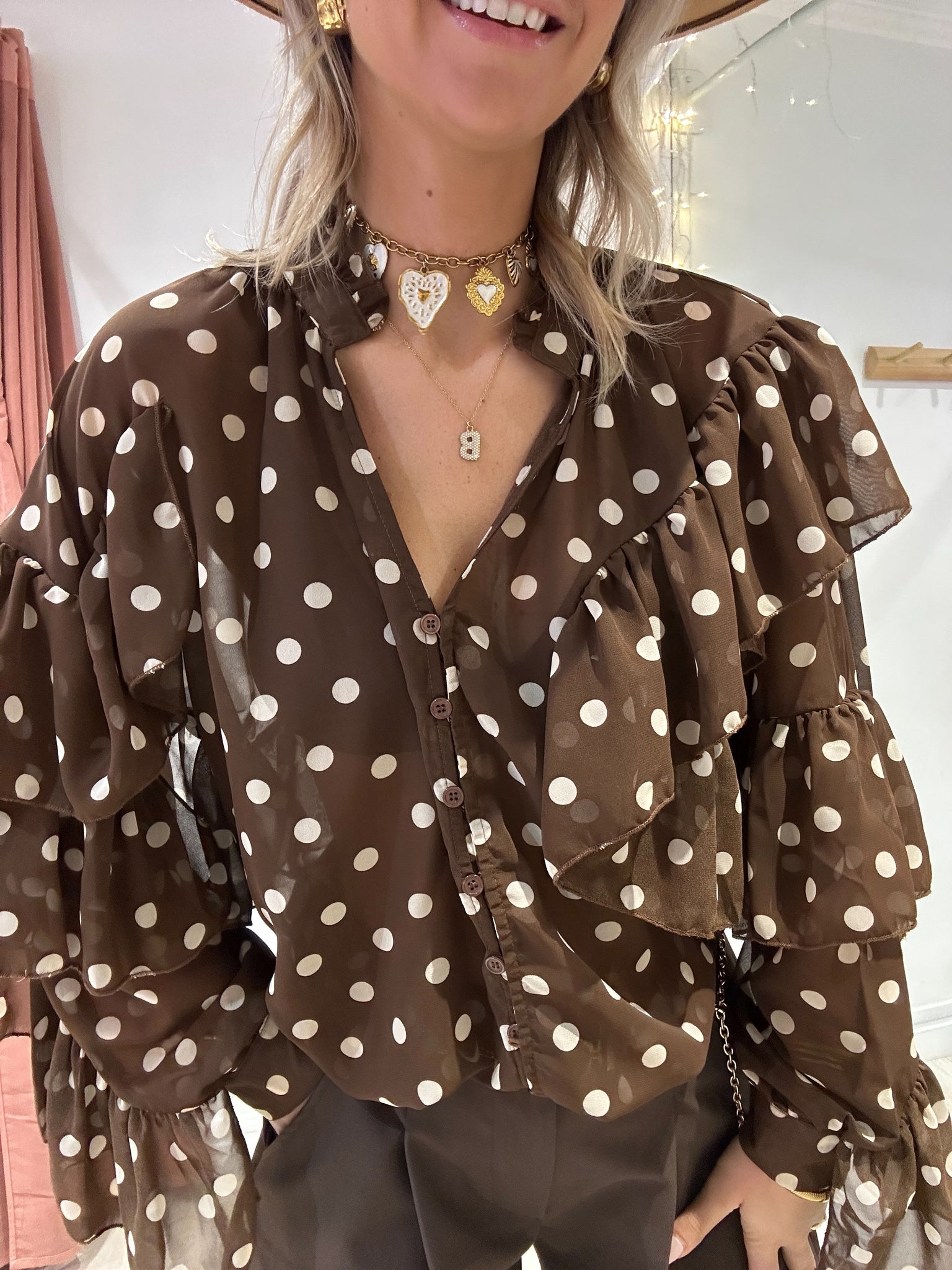 Blouse à volants à pois