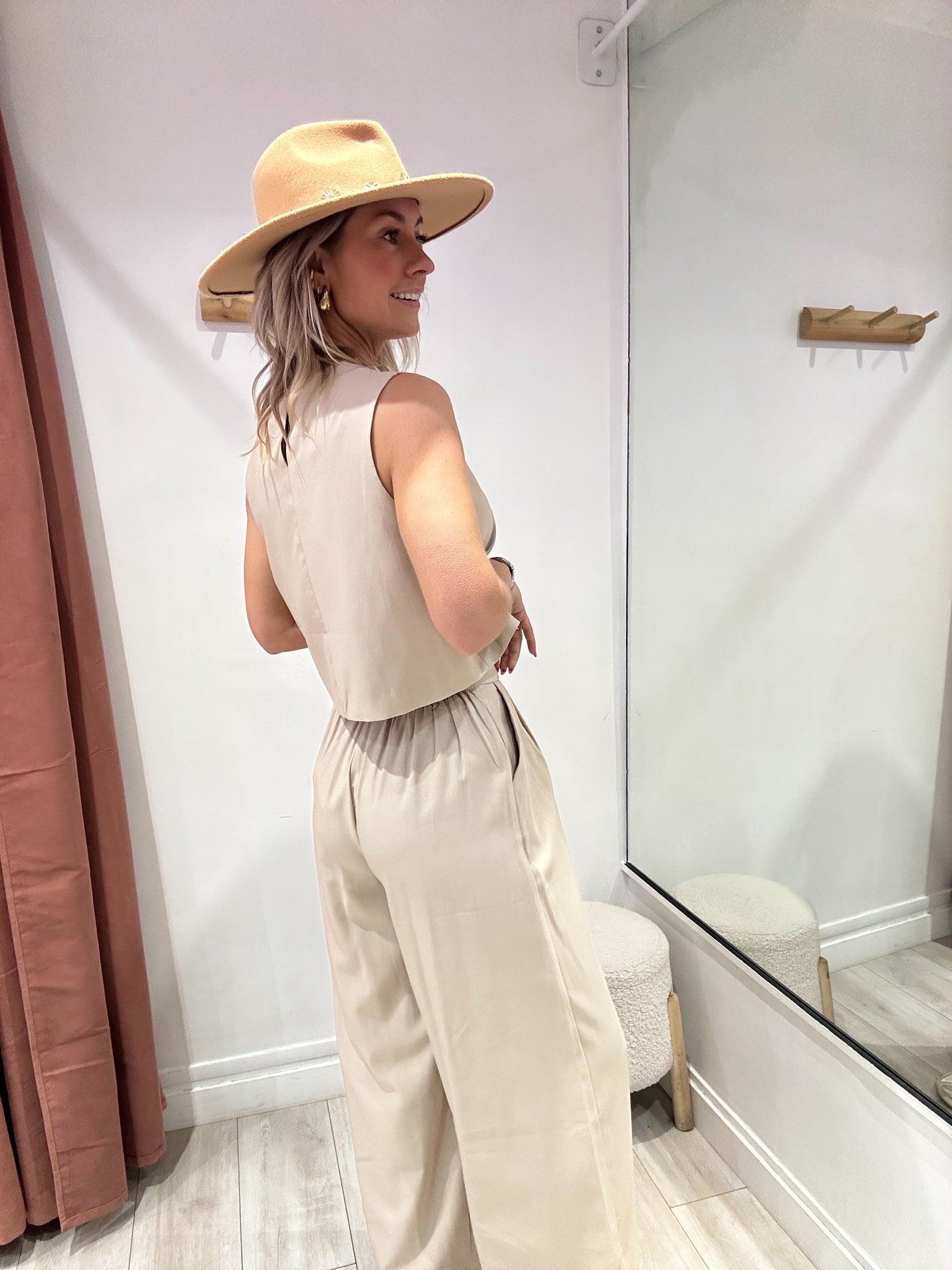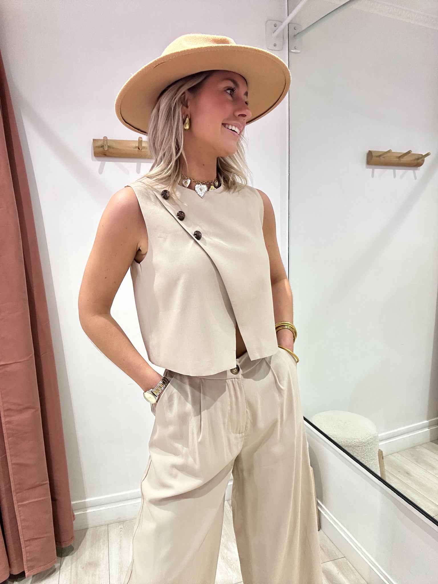 Ensemble top / pantalon beige