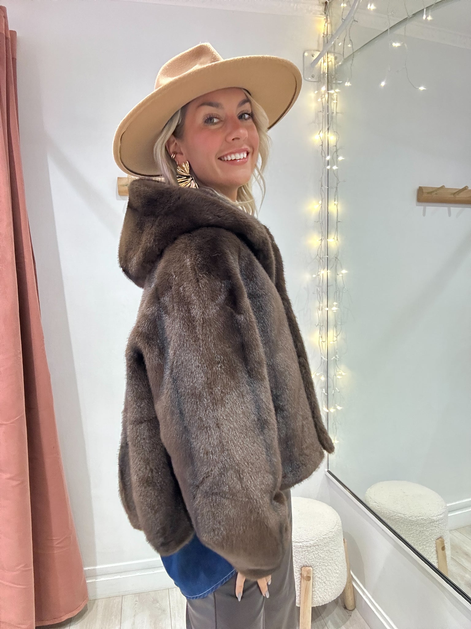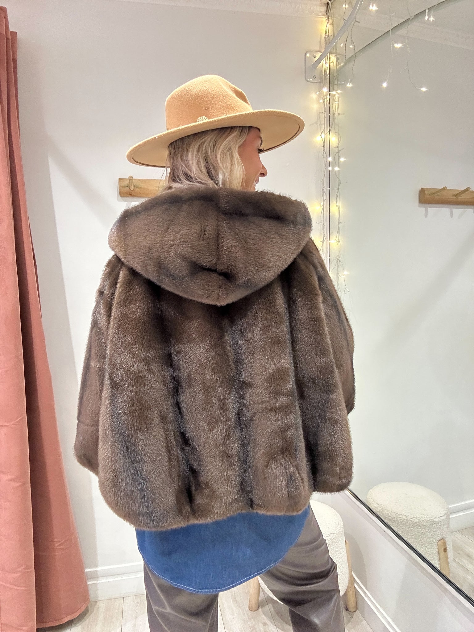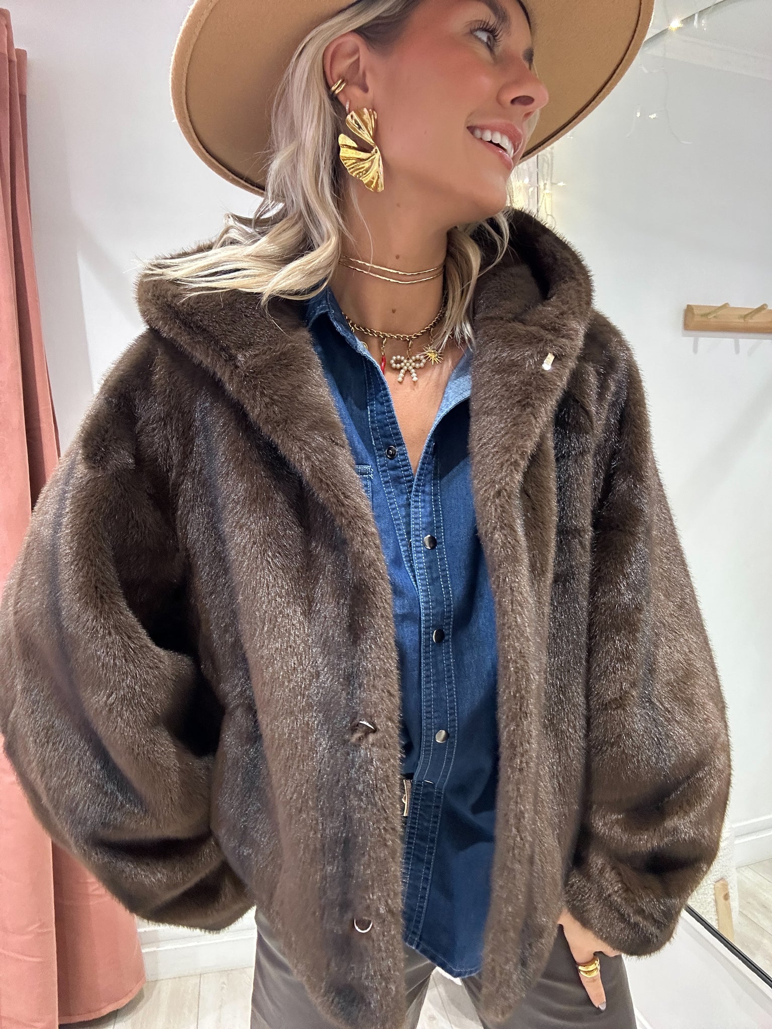 Fourrure marron chocolat avec capuche