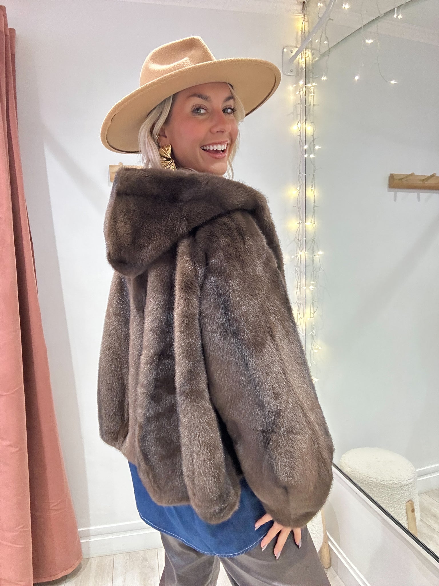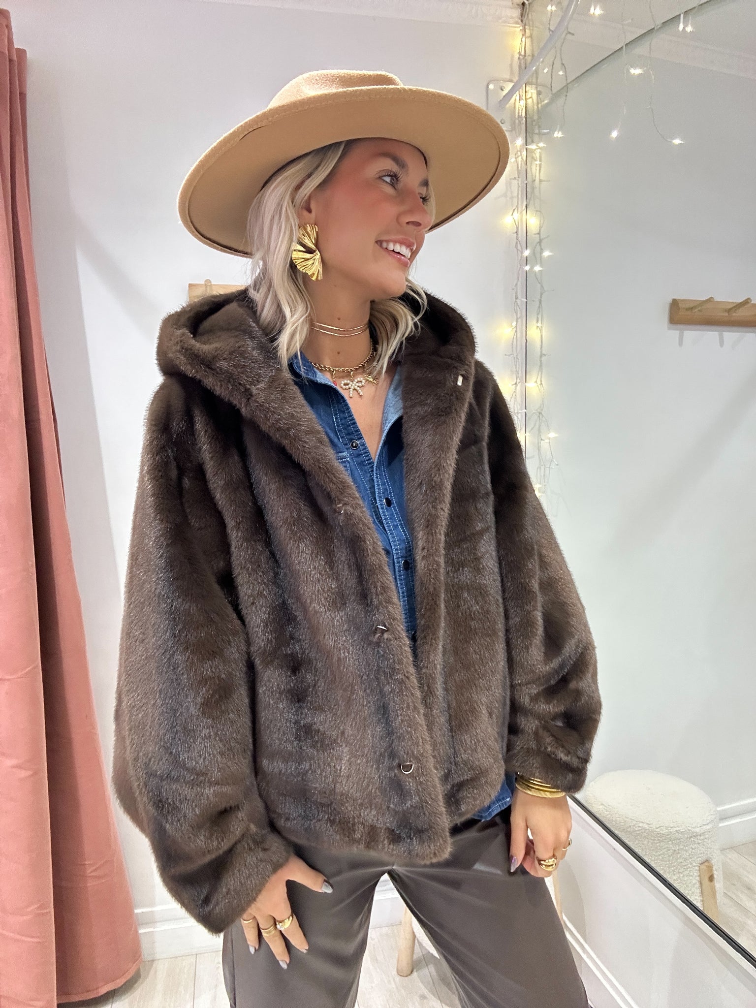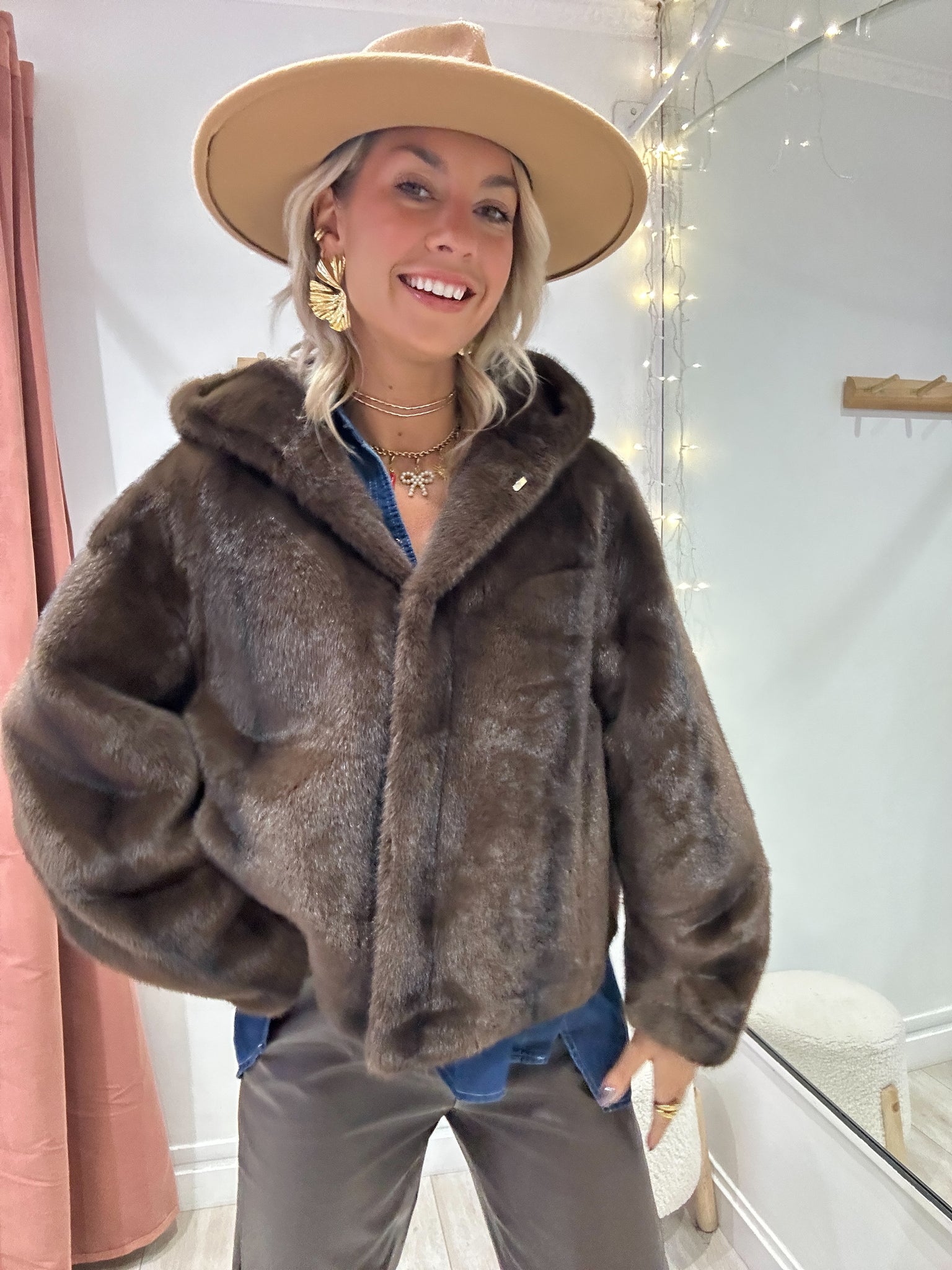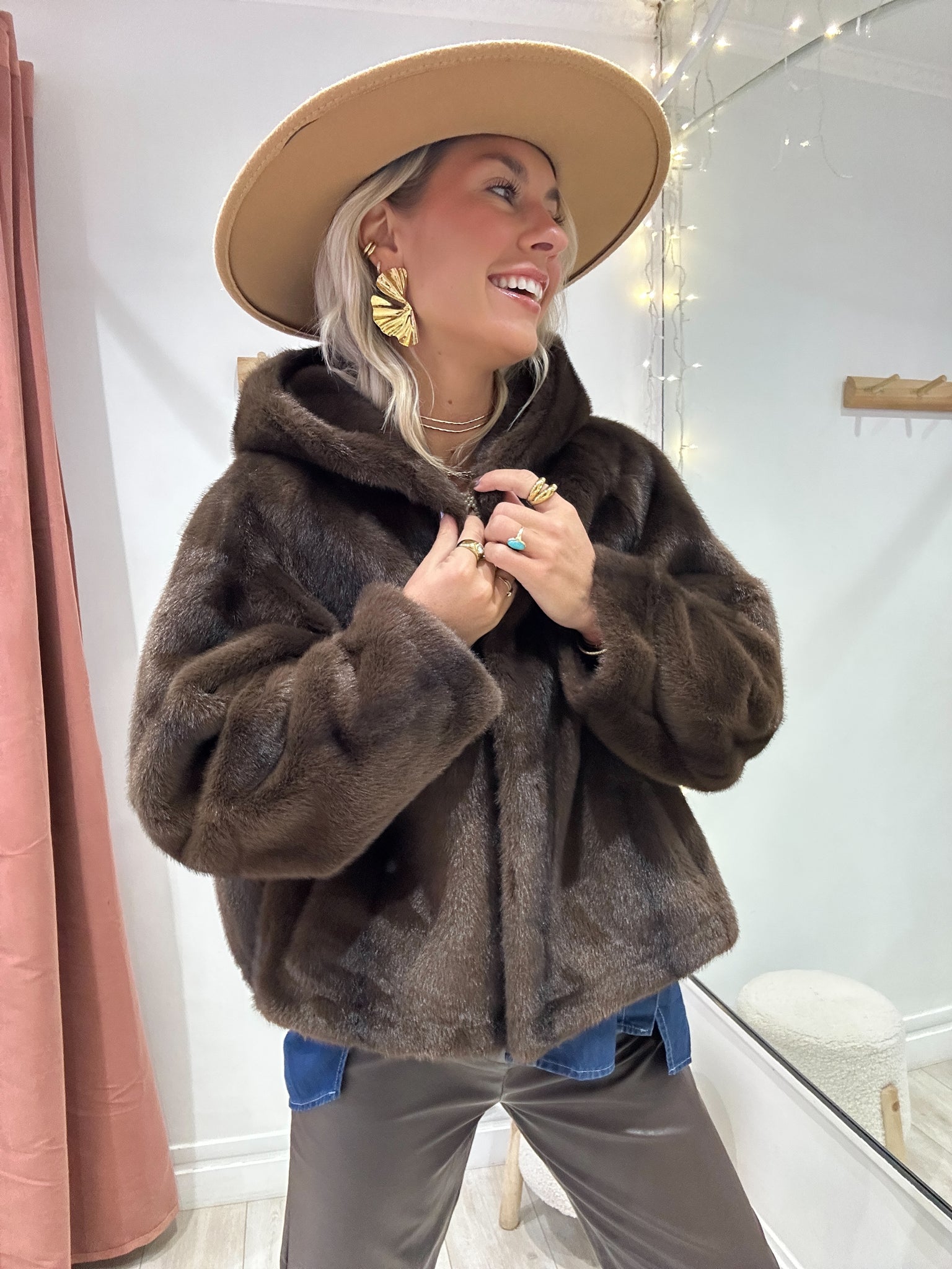 Fourrure marron chocolat avec capuche