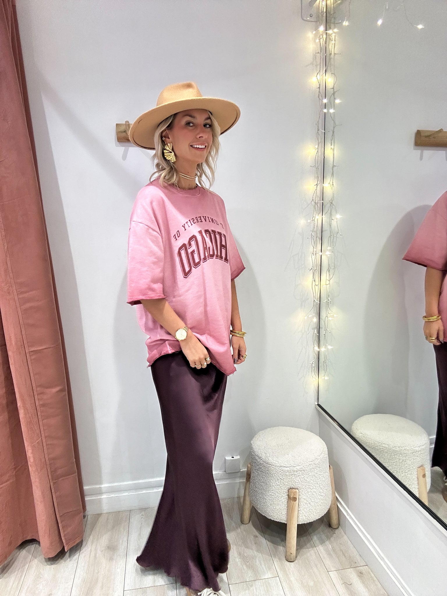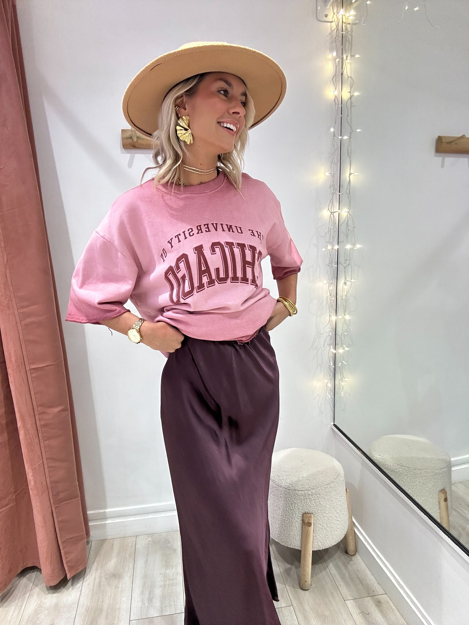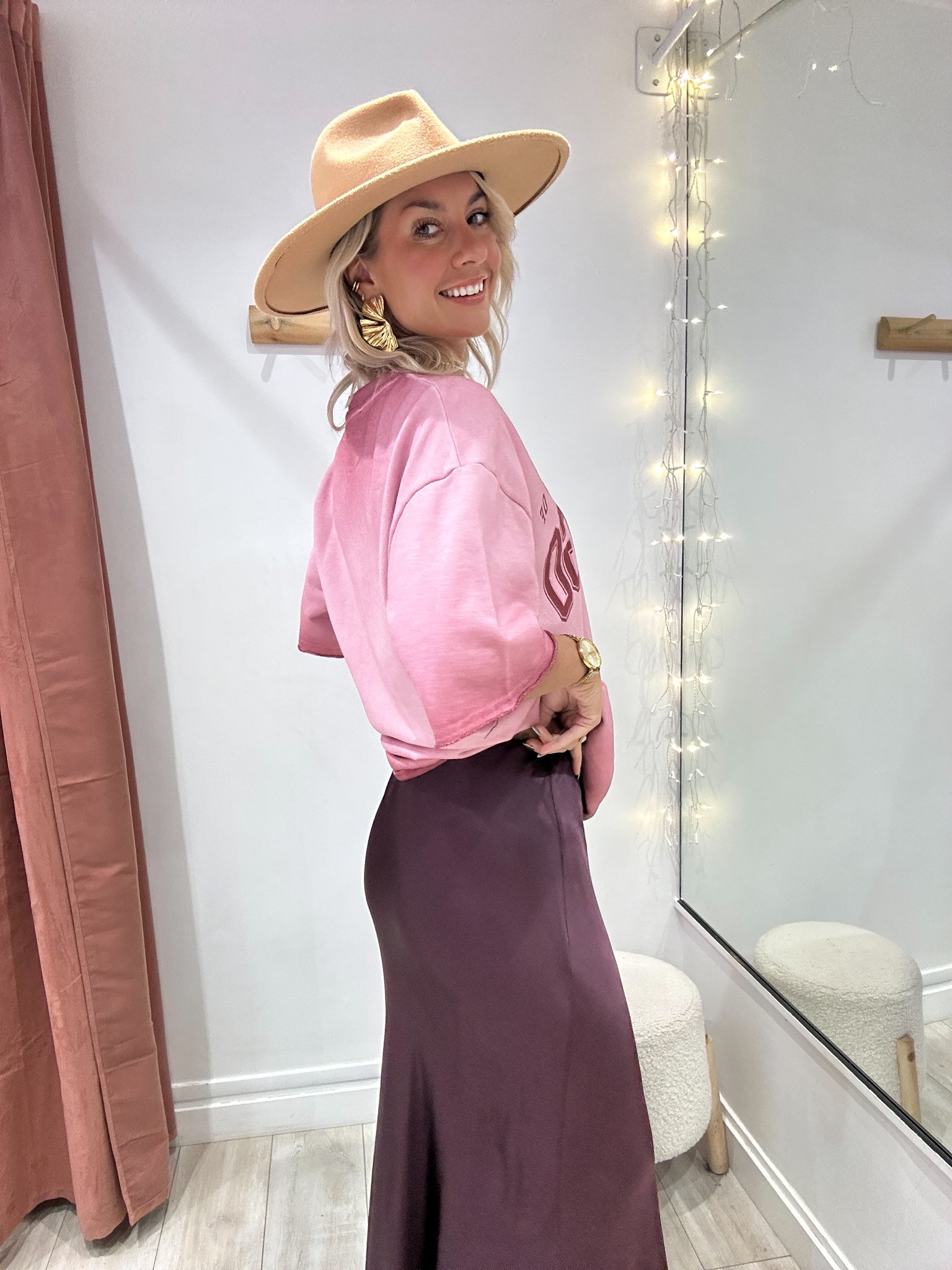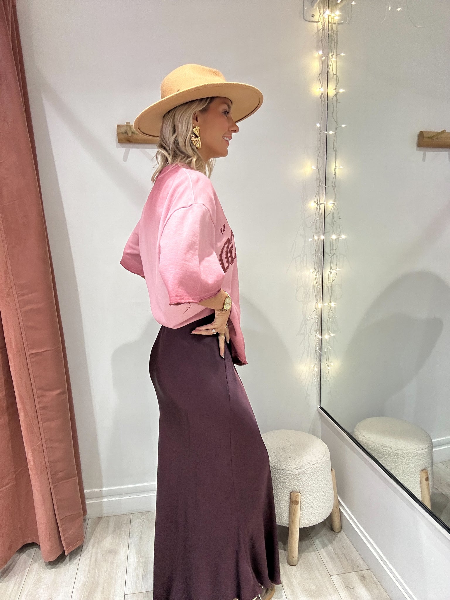 Jupe longue satinée bordeaux