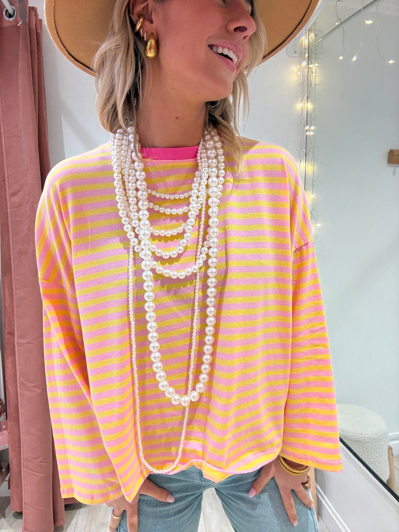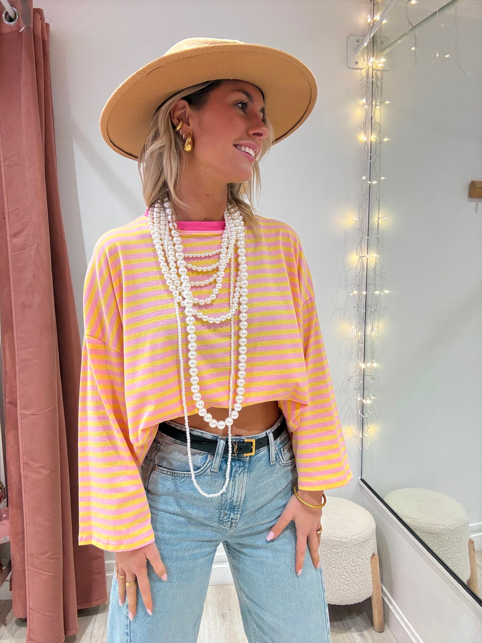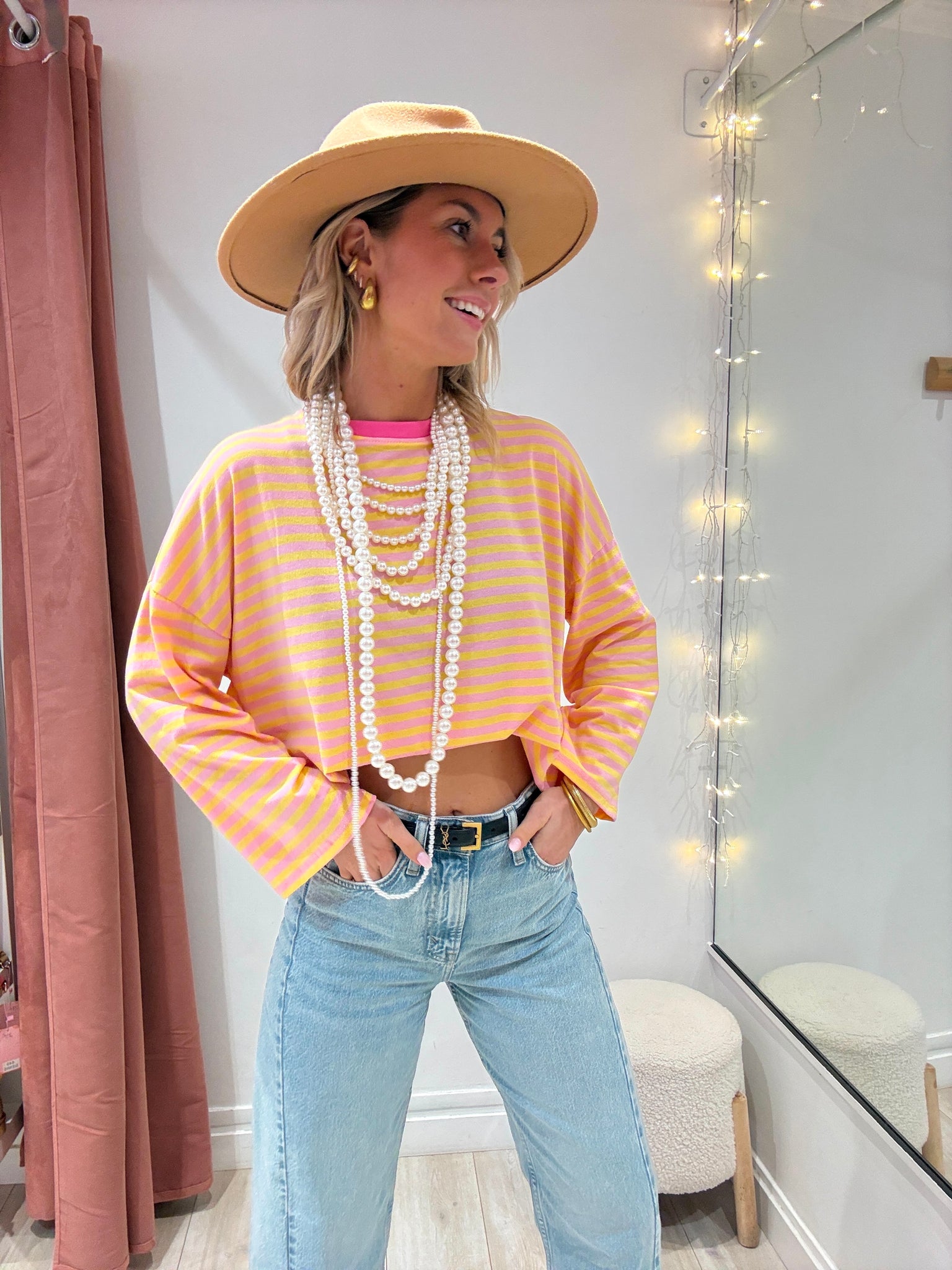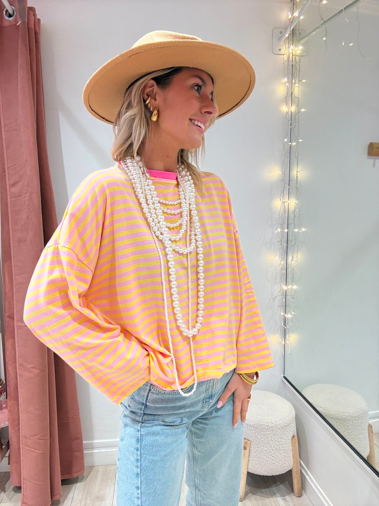 Marinière rose et jaune