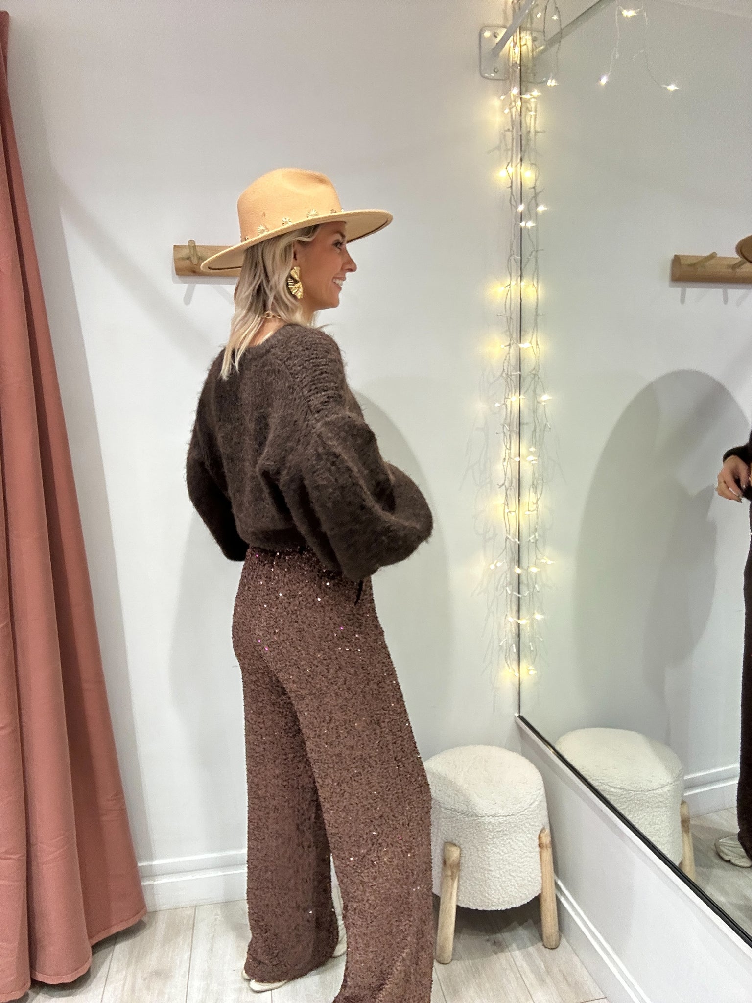 Pantalon marron à sequins