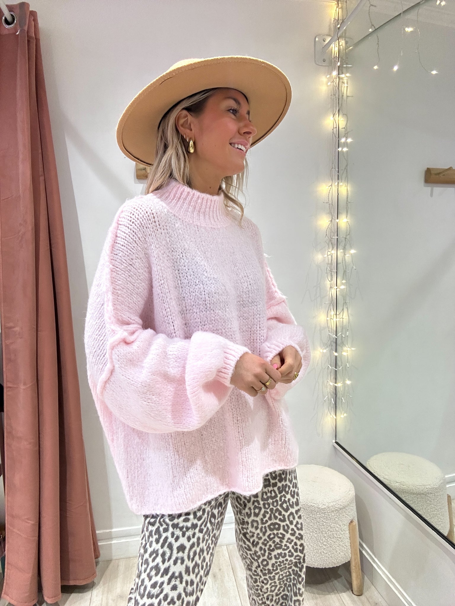 Pull oversize rose pâle
