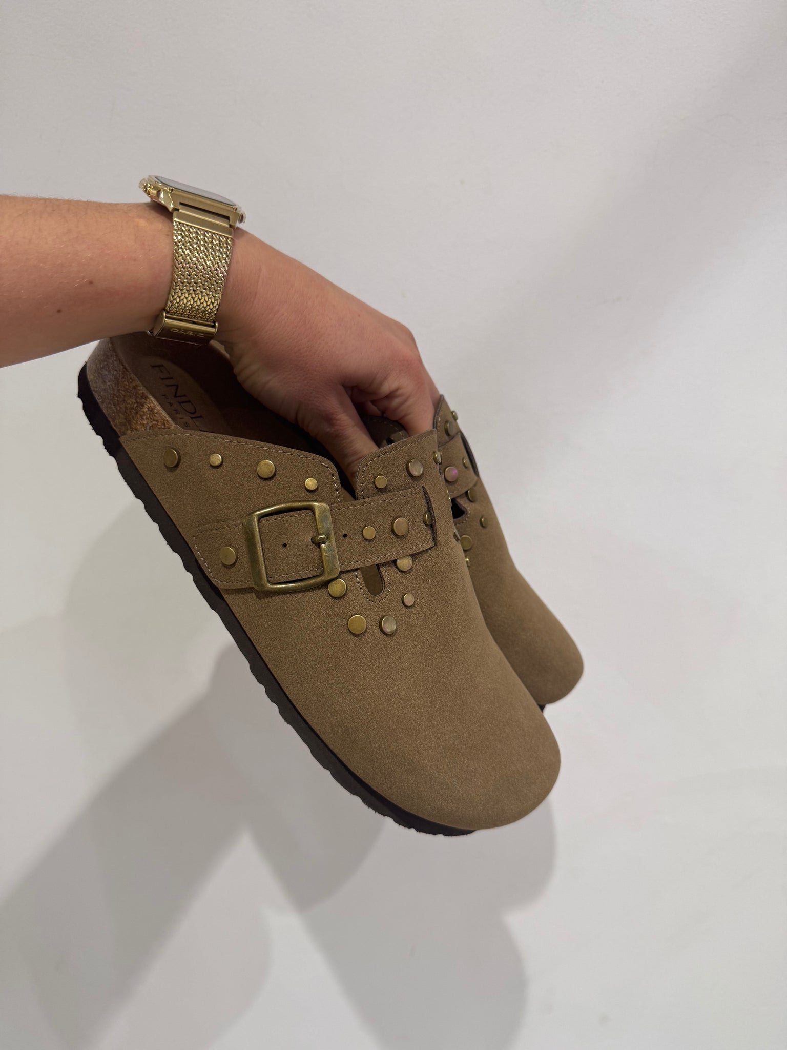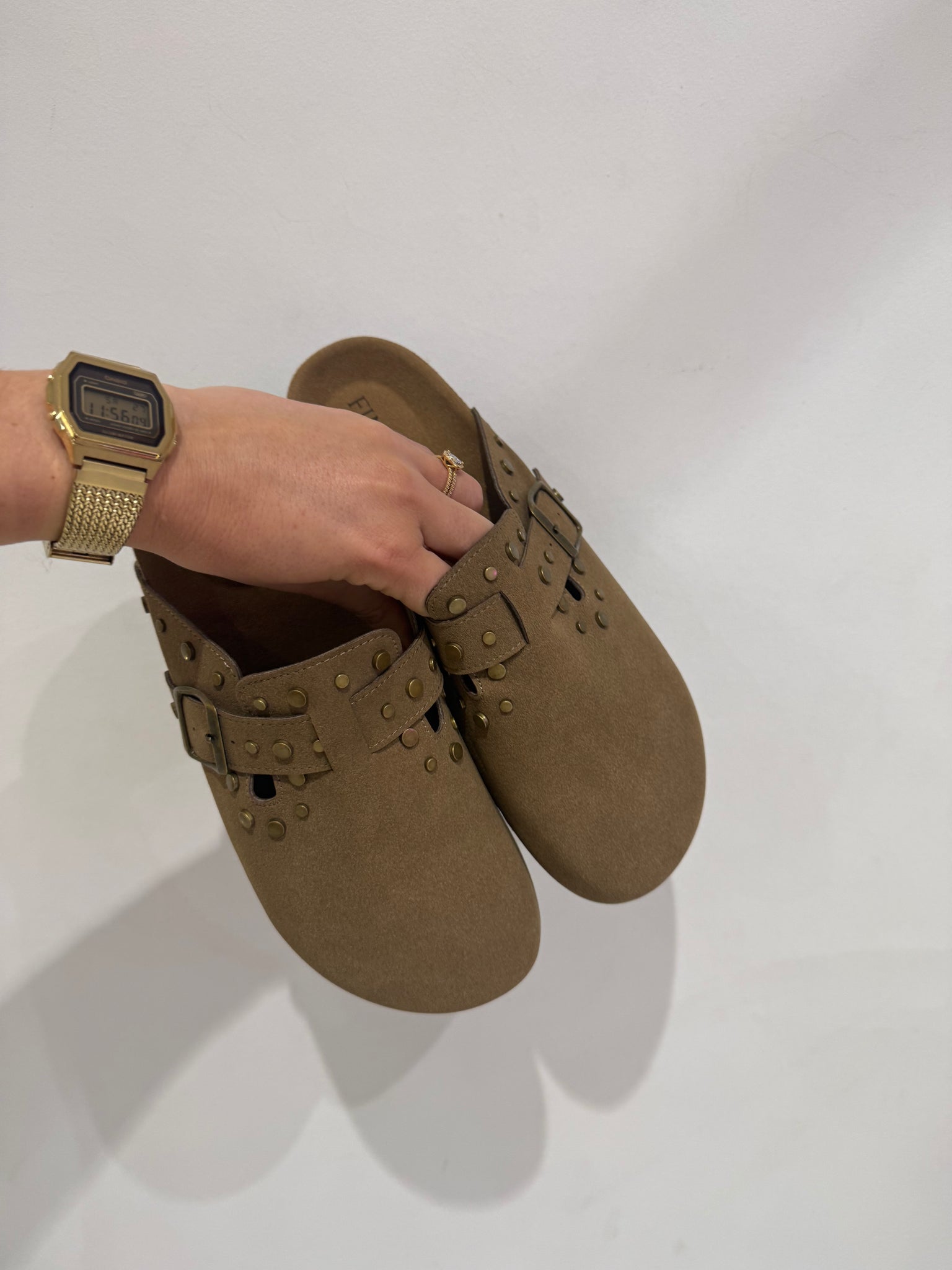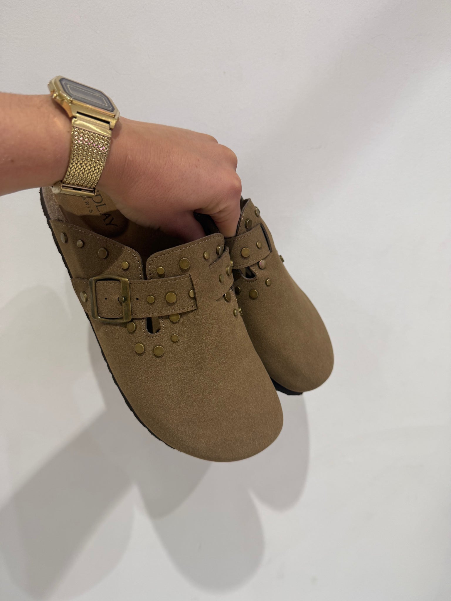 Sabots aspect suèdine beige foncé