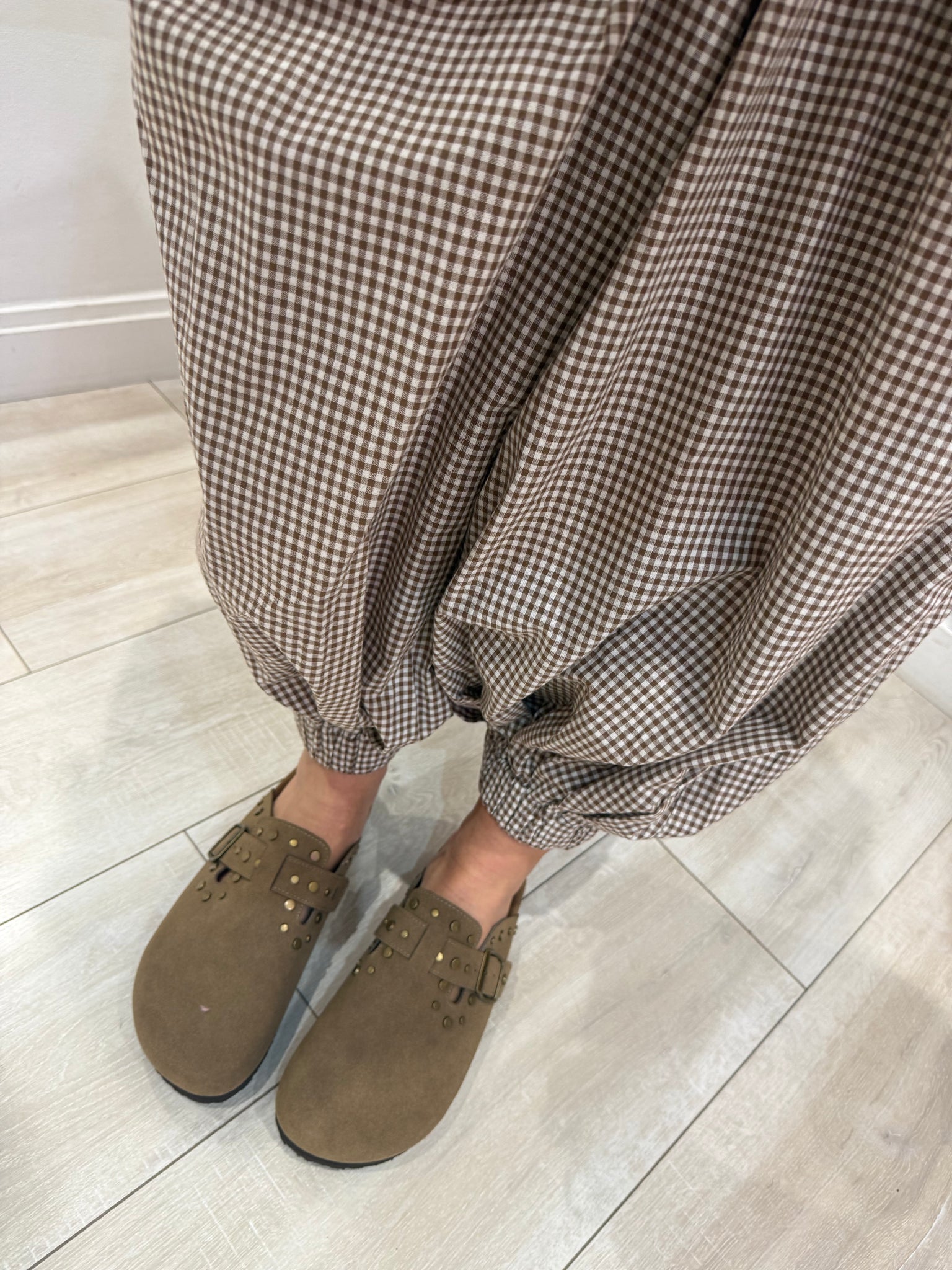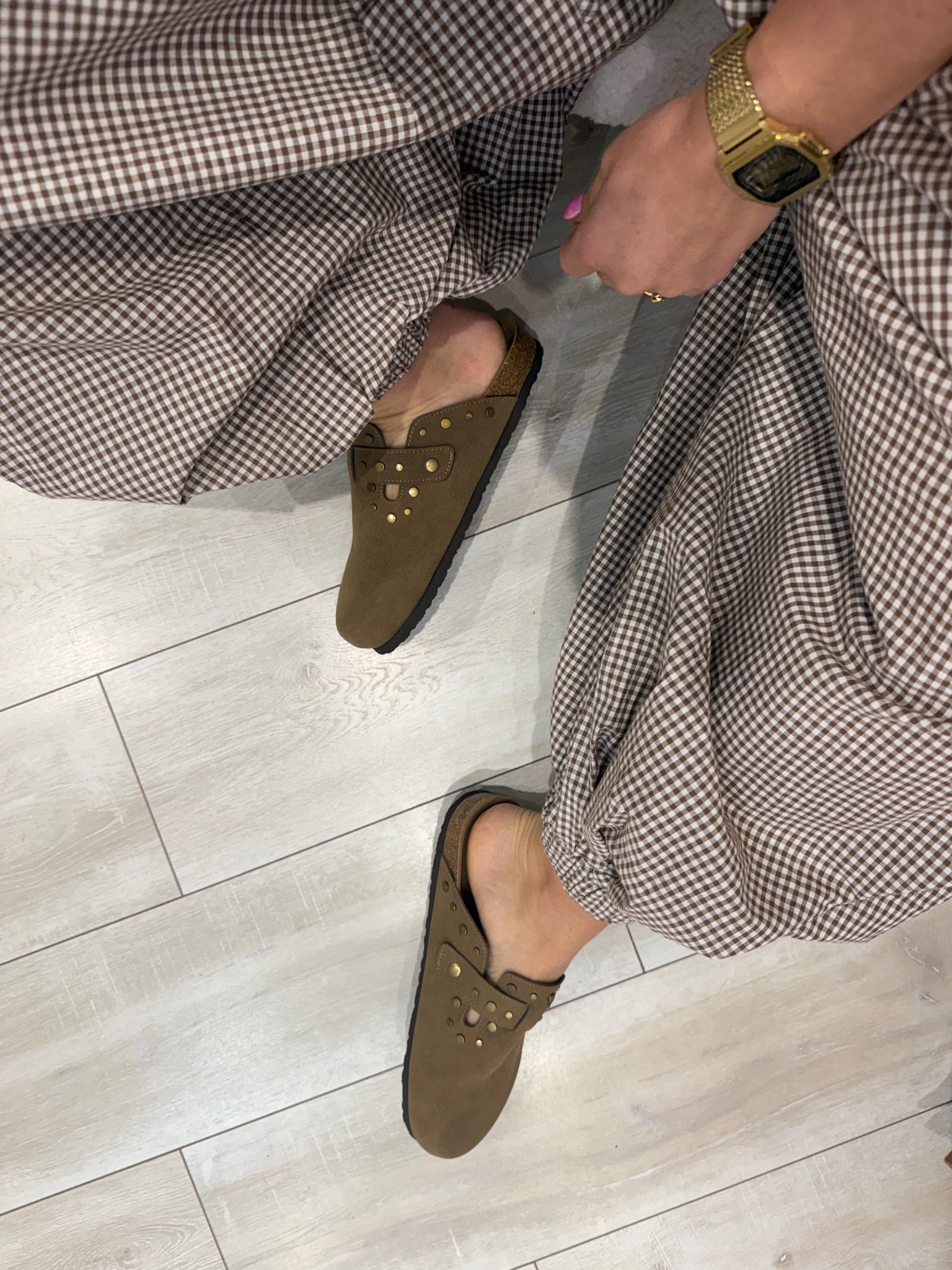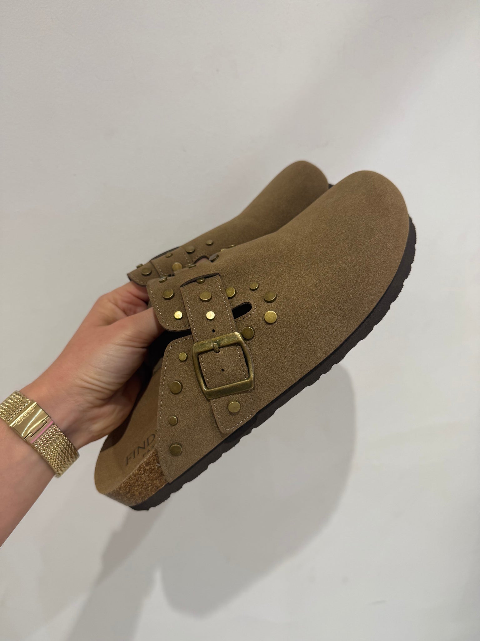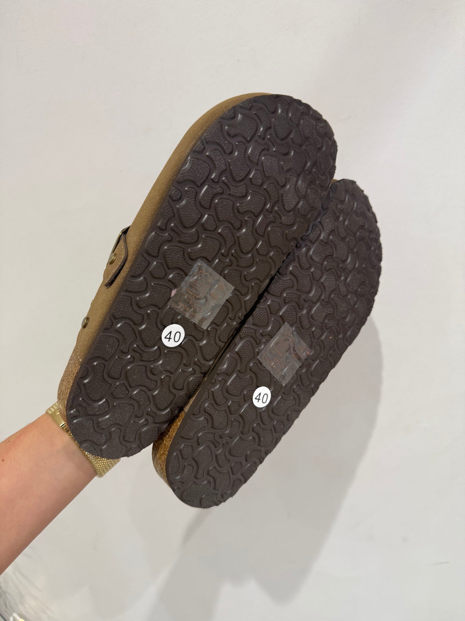 Sabots aspect suèdine beige foncé