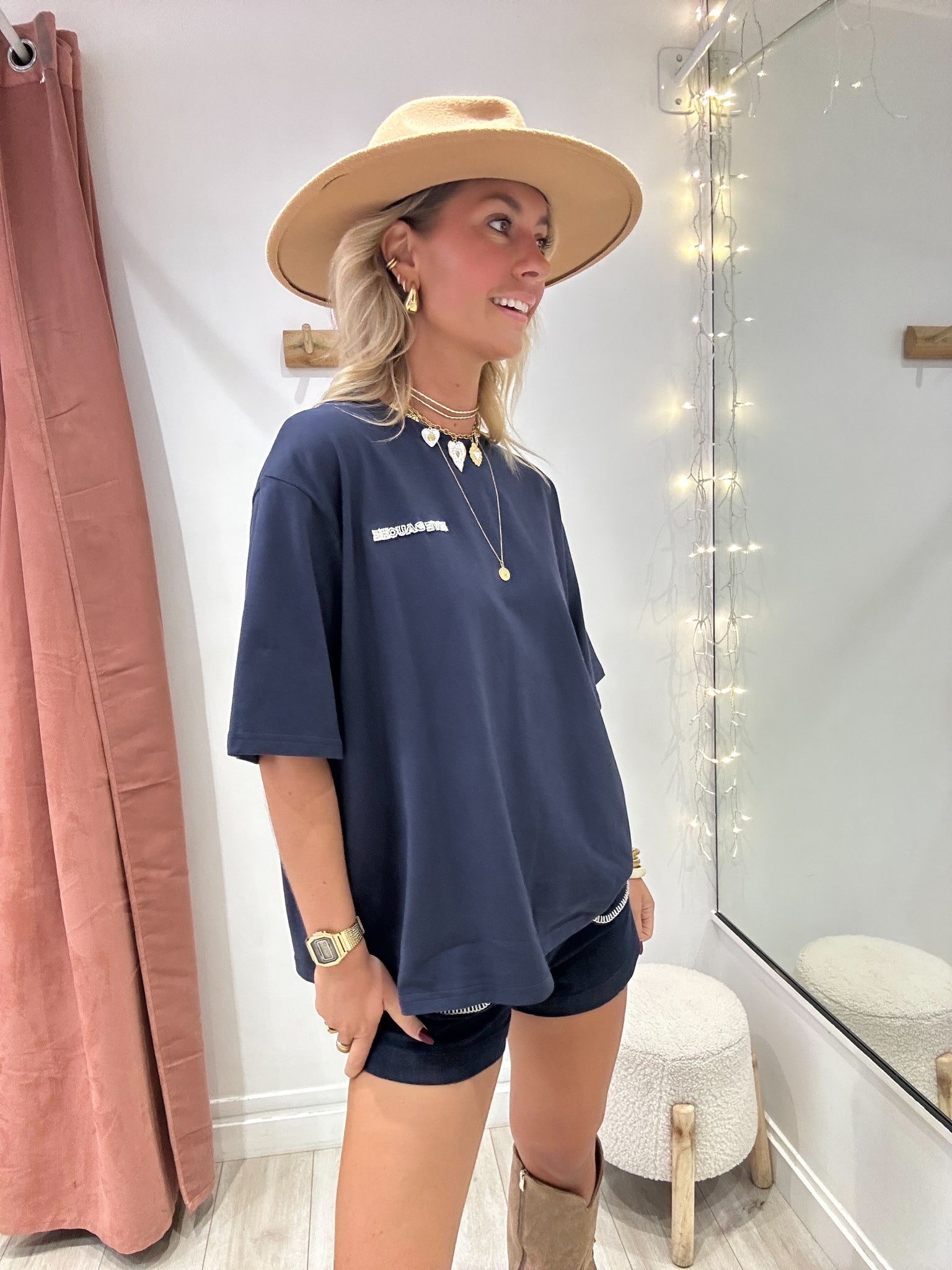 Tee shirt bleu marine avec inscription "rive gauche" en relief à l'avant et dans le dos
