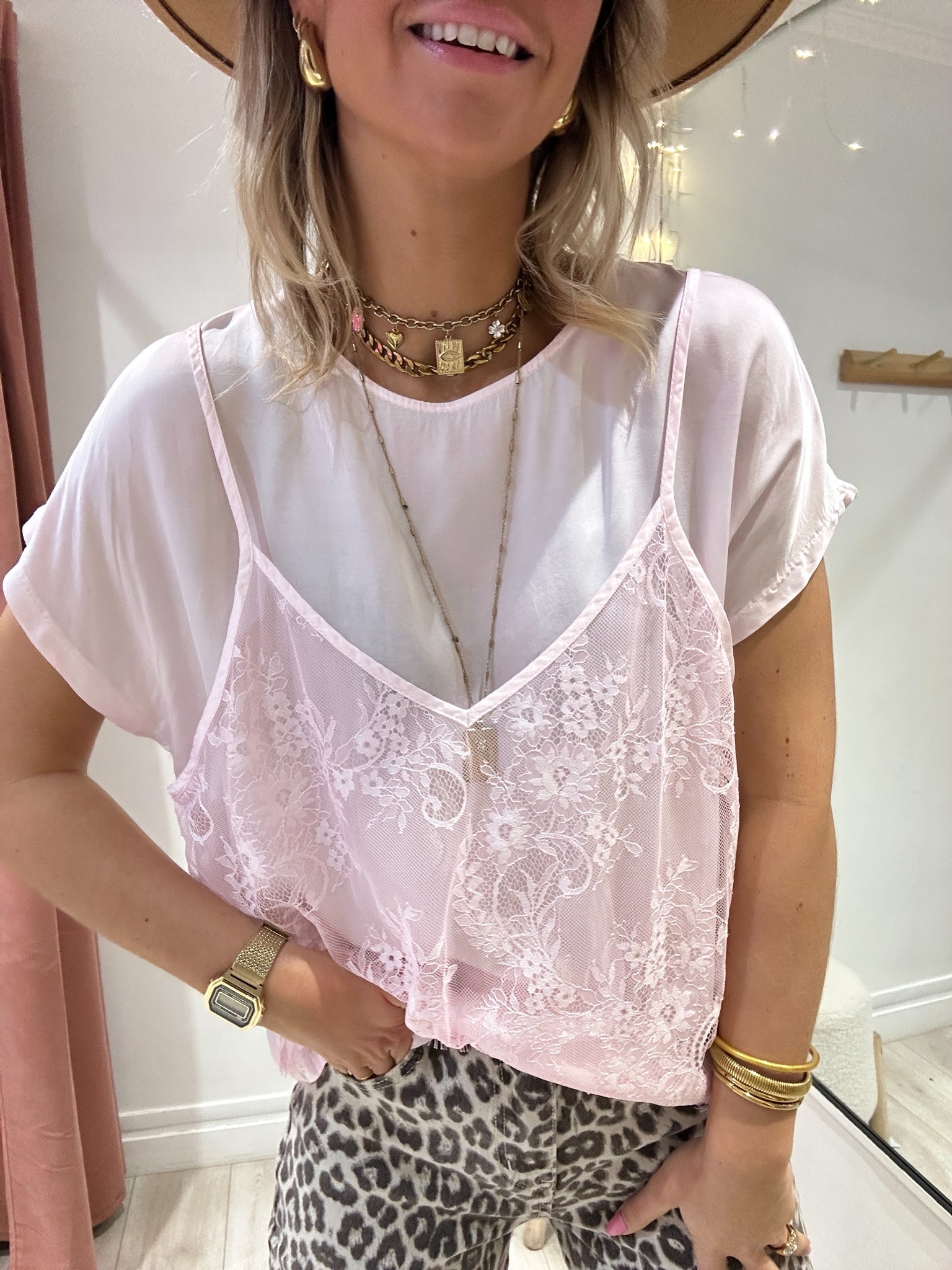 Top satiné avec dentelle sur le devant