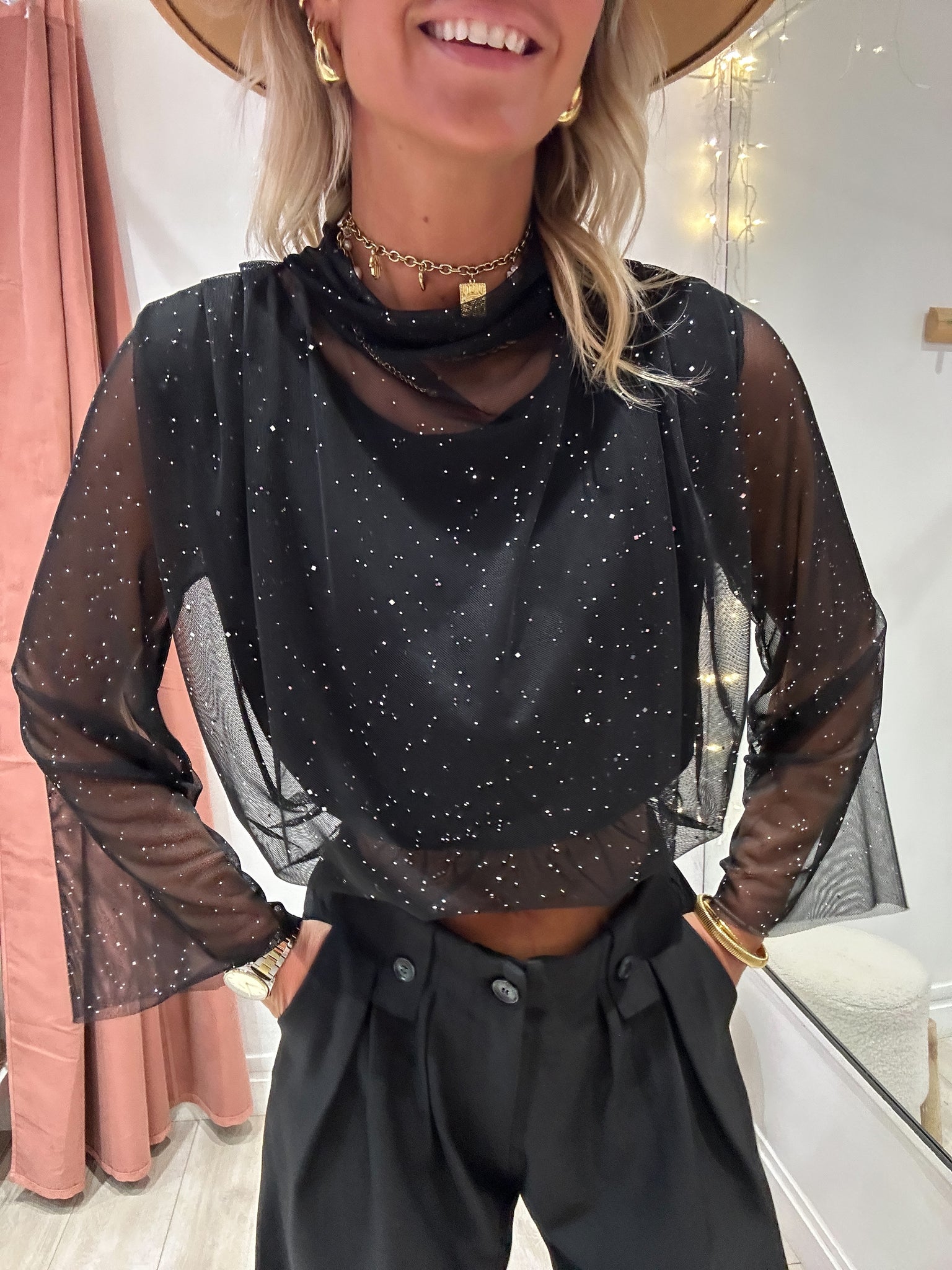 Manche et col montant en tulle