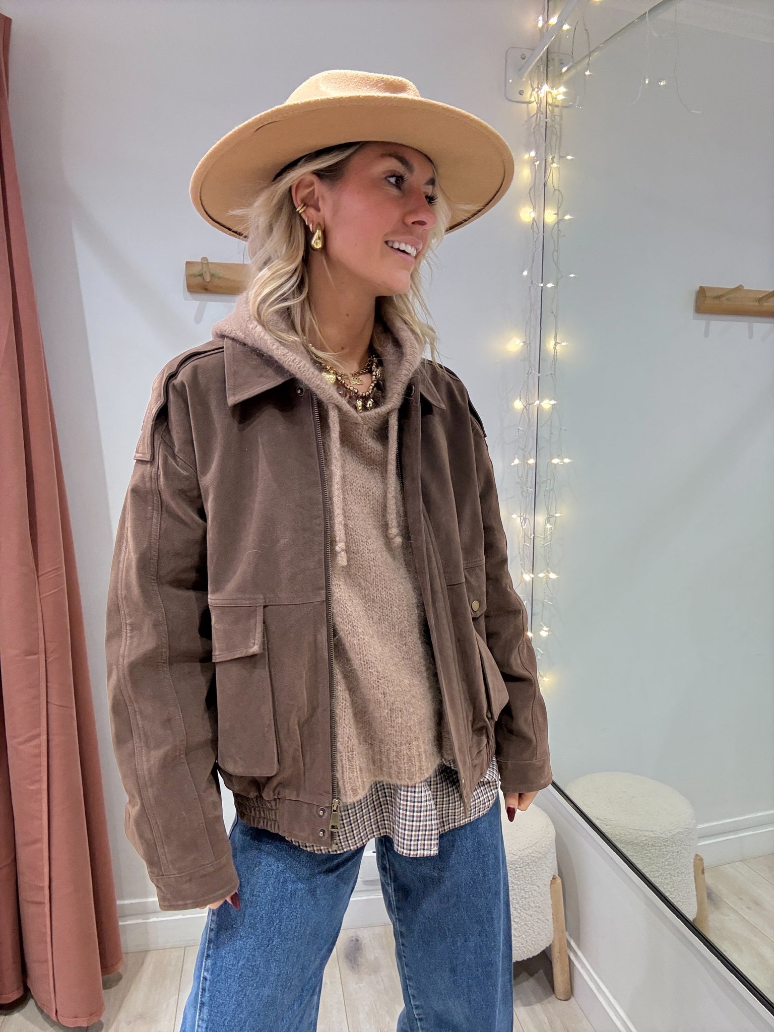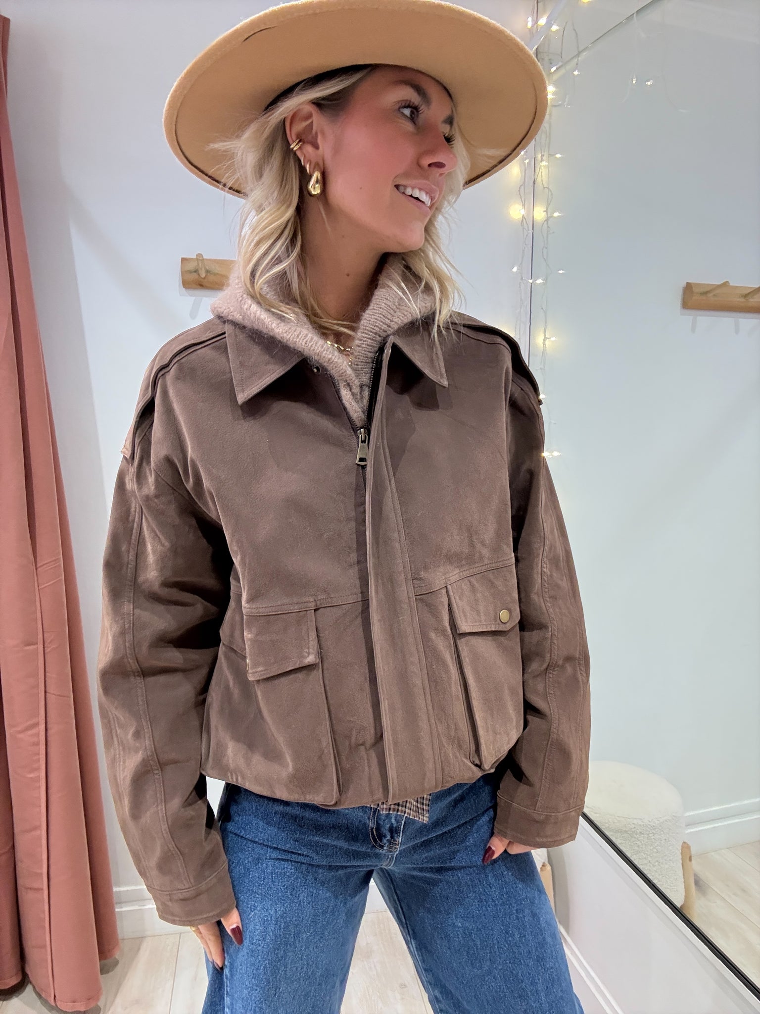 Veste marron en suédine coupe oversize